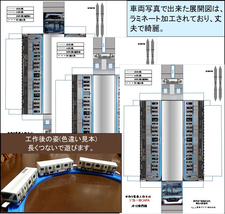 電車写真カラー印刷、ラミネート加工ペーパークラフト、連結器・芯材付き